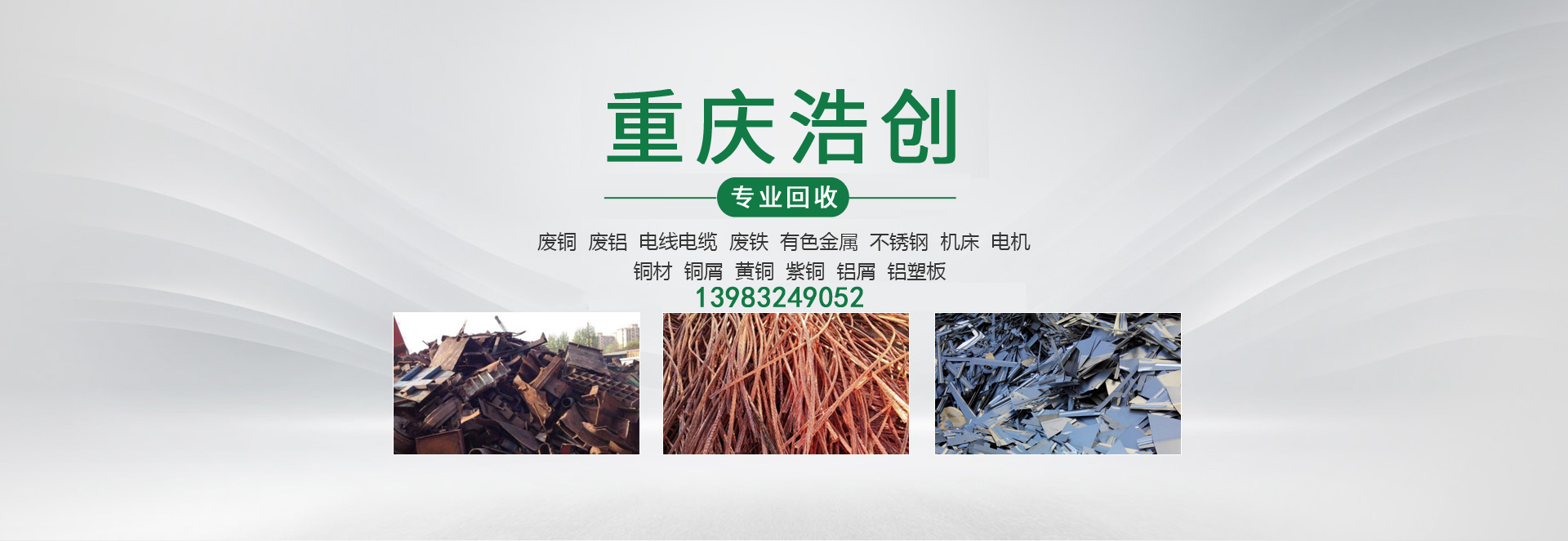 重慶浩創(chuàng)廢舊金屬回收有限公司從事廢舊物資回收,回收各種廢鐵、廢銅、廢鋁材、電線電纜、中央空調(diào)、銅、鋁、錫等。我們實(shí)力雄厚,有專(zhuān)業(yè)人士上門(mén)免費(fèi)作價(jià), 價(jià)格合理,切實(shí)使本市居民及企業(yè)事業(yè)單位在出售廢舊二手回收時(shí)得到便捷、公平、安全的服務(wù)。深受新老顧客的好評(píng)!我們?cè)概c各界朋友合作,互惠共贏,共同創(chuàng)造財(cái)富!我公司是一家致力于環(huán)保的企業(yè),“ 變廢為寶,凈化環(huán)境 ”是我公司的經(jīng)營(yíng)宗旨。廢舊物資的統(tǒng)一收購(gòu)及對(duì)廢舊產(chǎn)品的綜合加工,資源循環(huán)的再生利用,讓閑置的資產(chǎn)動(dòng)起來(lái),變廢為寶,取之于民、用之于民。